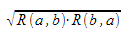 So then you can work that out for R(a,b) and R(b,a), take the geometric mean as before, multiply by 100 and your result should be a value between 0 and 100 vaguely indicating how 'close' Alice and Bob are.