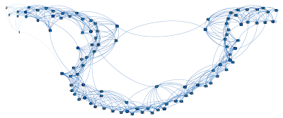 Over-arcs are forward movements (dice rolls and ladders), under-arcs are backwards movements (snakes).