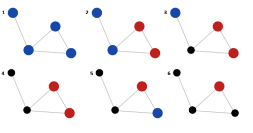 Now, we say that if at least one of a user's friends is posting, then the user will 'come online' and post in the next turn. Vice versa, if none of their friends are posting, then the user will 'go offline' and not post in the next turn.