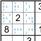 2) If you fix any new squares this way, go back to (2) to see if that will allow you to set any more squares.