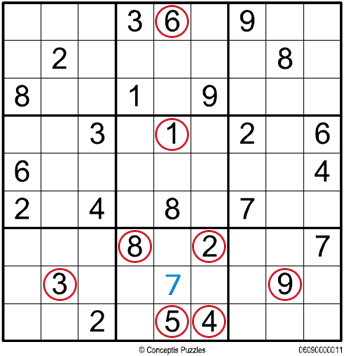 That is, if every other number already appears in the same row, column, or box as a given square, then that square can only be one particular number.