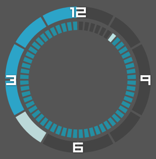 In this case, we can't use progress bars. Instead, we have to make each ring segment an individual rectangle object, that will change its colour depending on whether it's representing a one or a zero. This makes constructing the clock a little less straightforward.